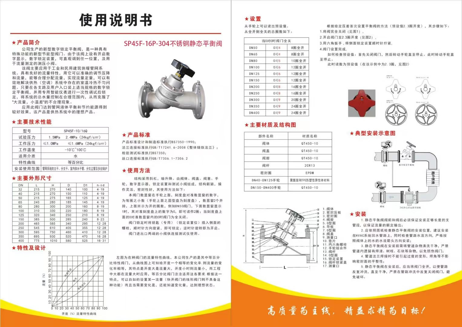 靜態(tài)平衡閥安裝示意和流量曲線圖: